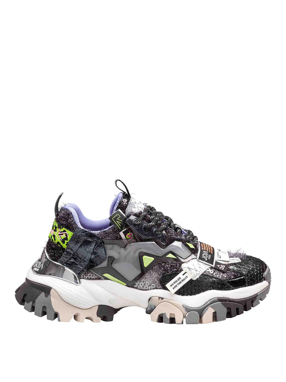 Matériaux multicolores en TPU et imprimés Outdoor avec un dos effet métallique et une hauteur d'assise plantaire amovible