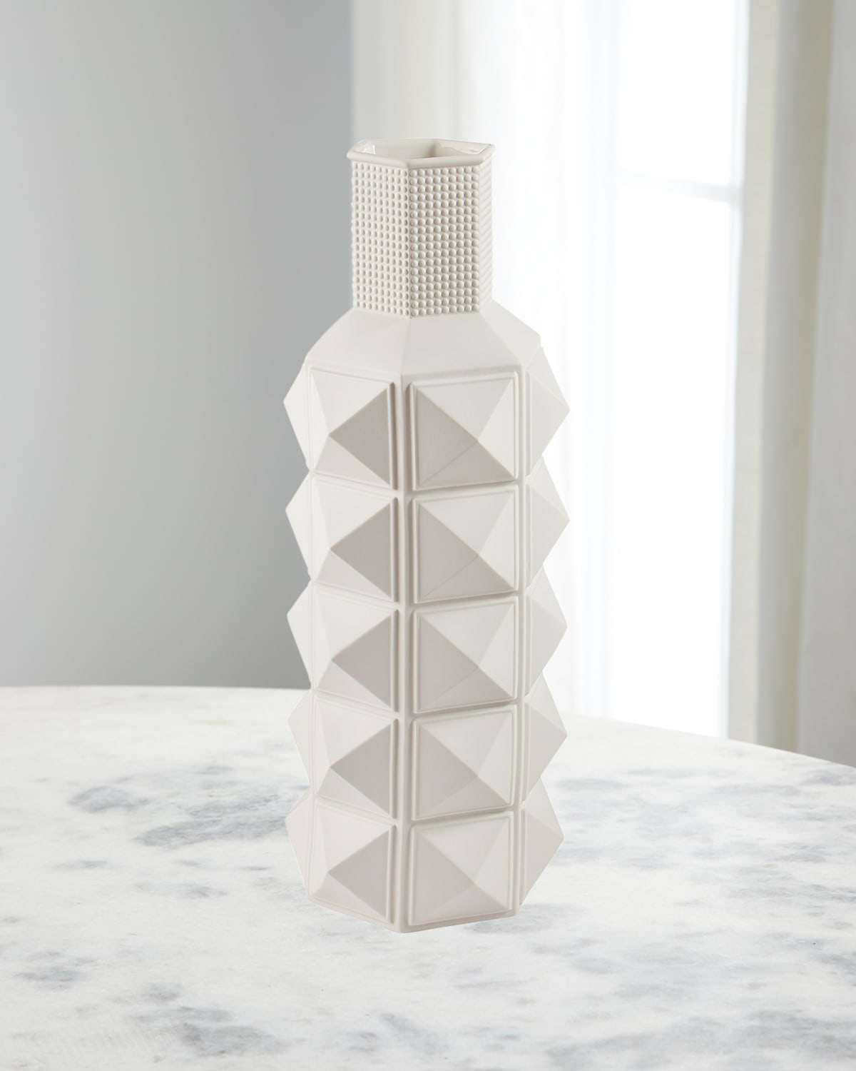 Vase is made of highfired unglazed porcelain Approx. 6.4"Dia x 20"T Sold individually Item Weight (Lbs.): 7.4 Dishwasher safe; hand washing recommended Imported