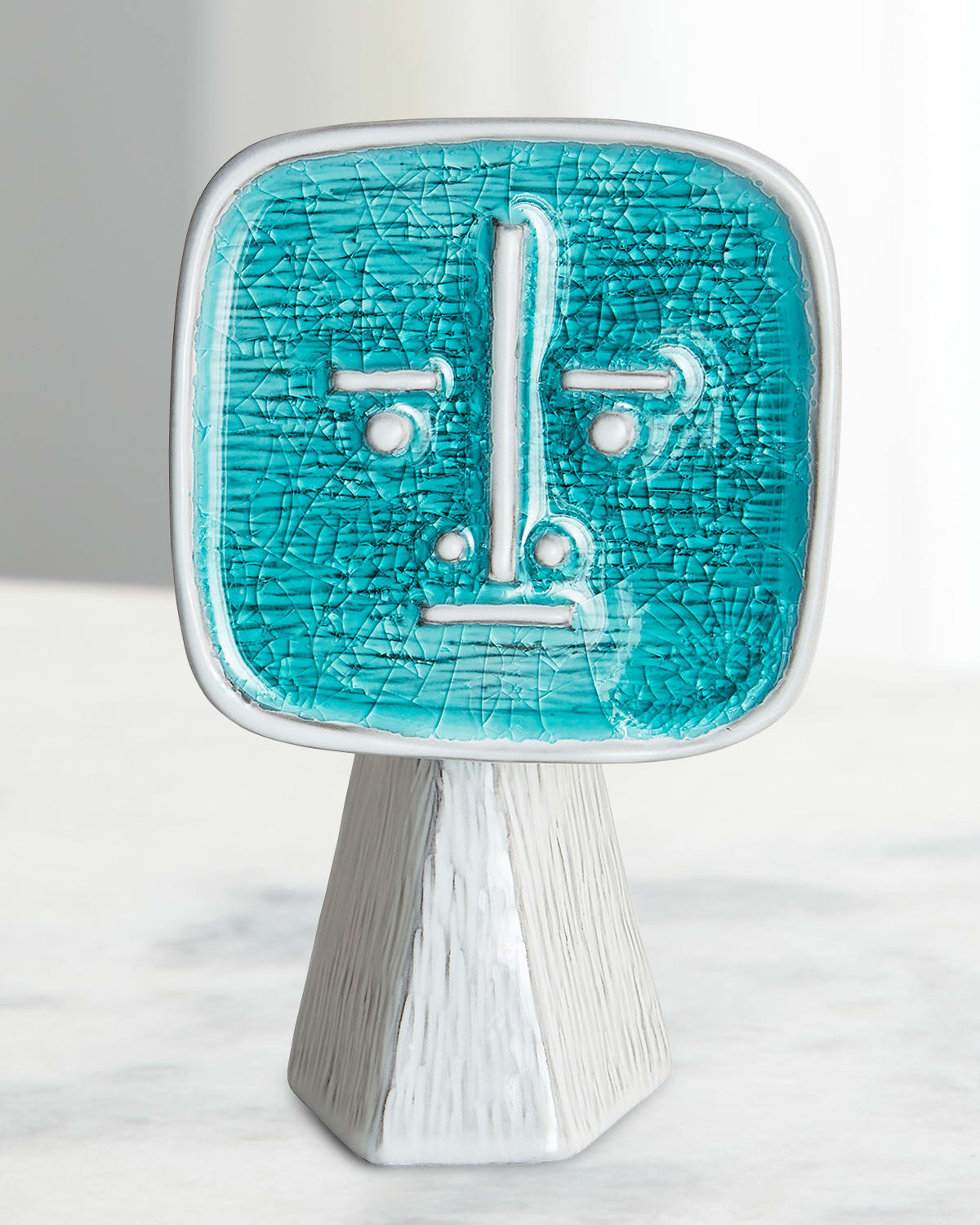 Vase featuring an angry face Handcrafted of stoneware and art glass Approx. 3.8"L x 6.8"W x 11"T Wipe clean Made in Peru
