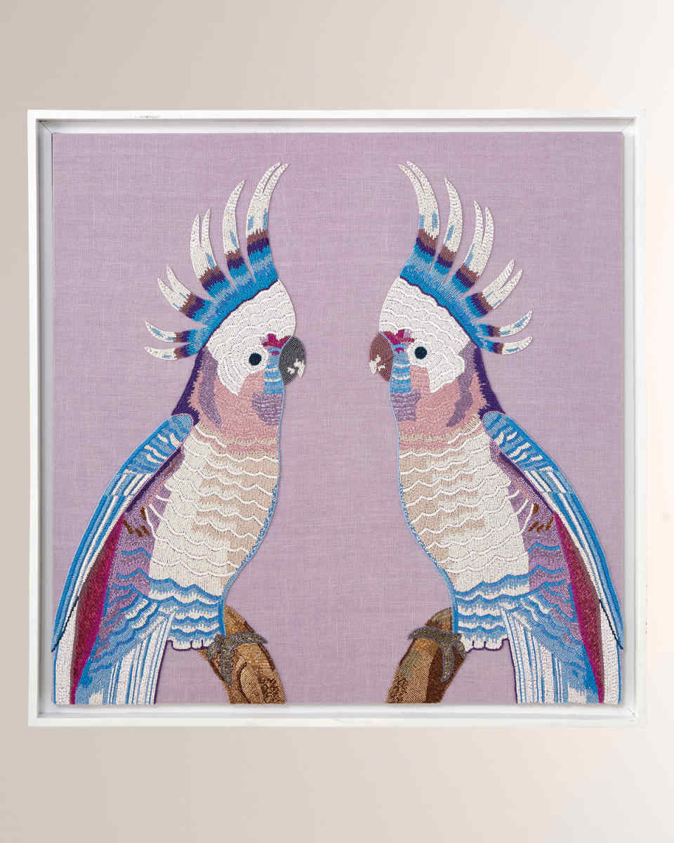 Decorative wall is handbeaded on linen ground, which floats in a galleryquality white frame. Beads of varying heights and patterns within patterns create a sense of depth and dimension. Approx. 2"L x 36"Sq. For indoor use only. Spot clean. Imported. Boxed weight, approximately 20 lbs.