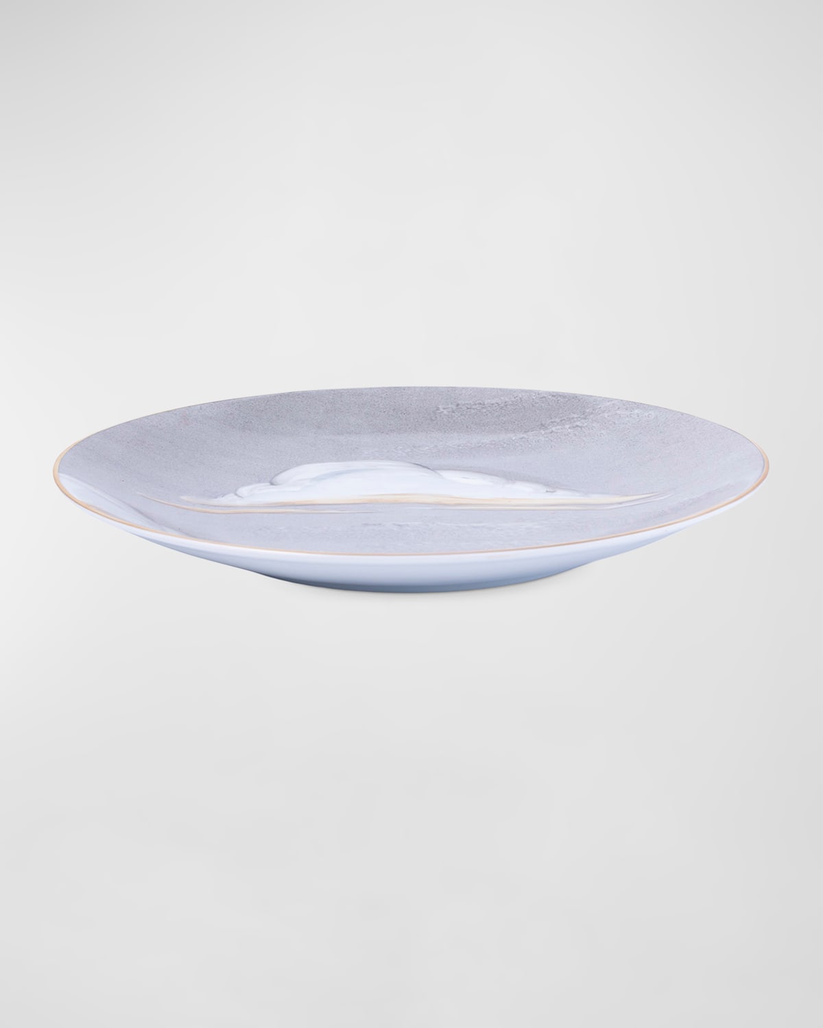 Dinner plate is crafted of handpainted Limoges porcelain with a 24karat gold rim Clouds are reverse painted Approx. 10.5"Dia Hand wash Made in France