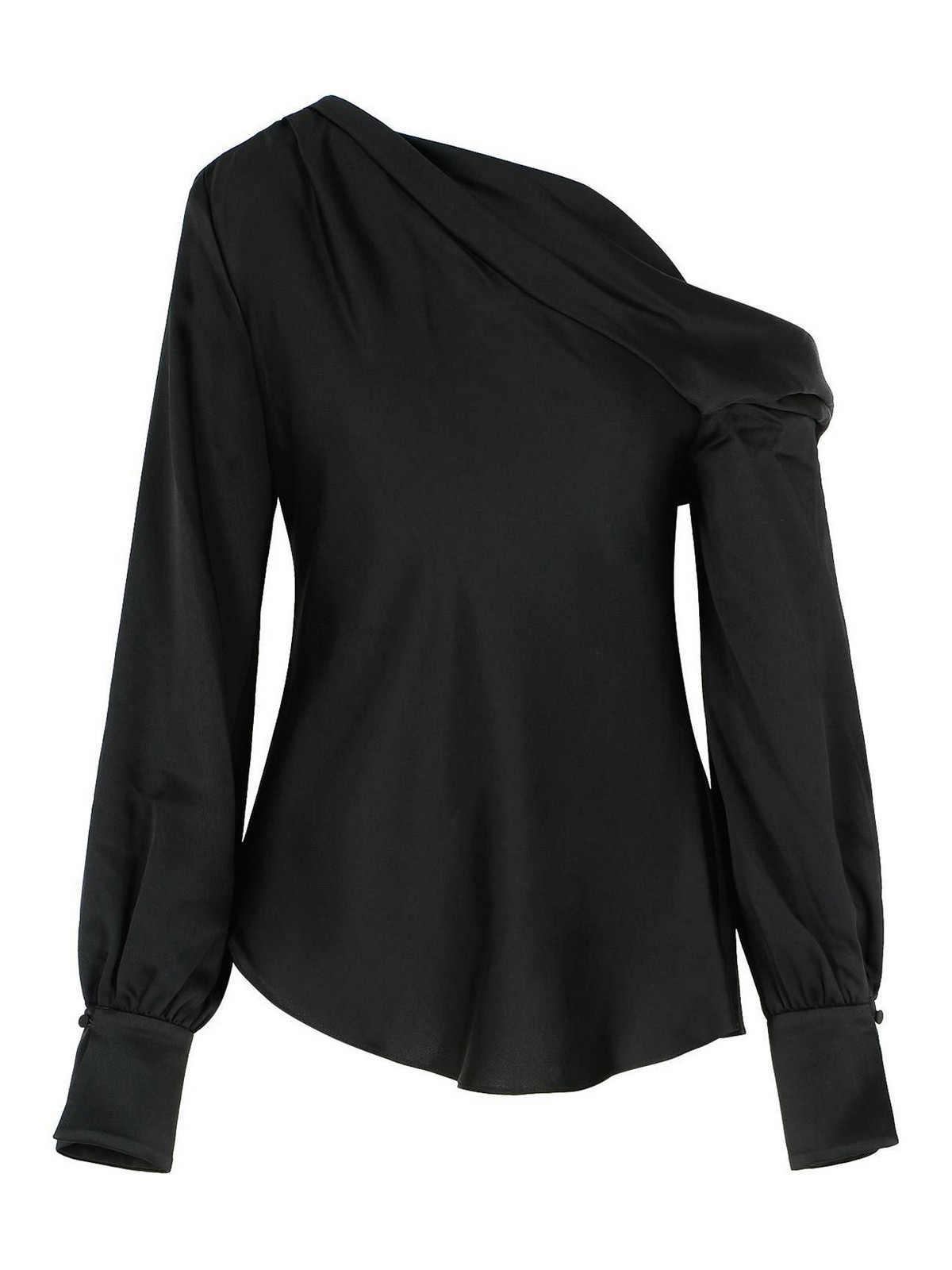Encolure asymétrique drapée avec épaules dénudées, poignets boutonnés et ourlet asymétrique