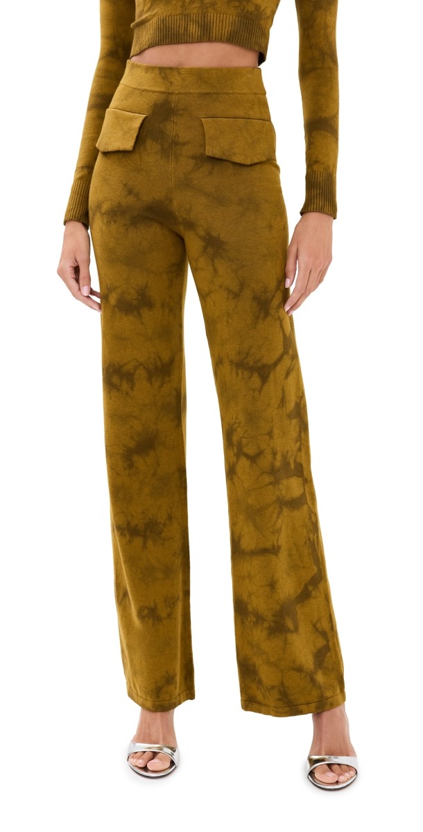 Fabric: Mid-weight compact knit. Tie-dye print. Wide leg. Covered elastic waistband. Faux flap front pockets. Shell: 70% cotton/20% nylon/10% silk. Imported, China. Measurements: Measurements from size XS Rise: 11.75in / 30cm Inseam: 33in / 84cm Leg opening: 20.5in / 52cm