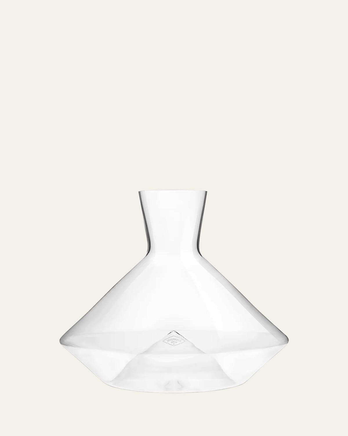 The handblown Brilliant Magnum Decanter celebrates decanting in style at every wine tasting. The selfconfident size stands in exciting contrast to the filigree structure, while the minimalist design underscores its impressive appearance. With its large base, the decanter is particularly suitable for the optimal aeration of young wines. Designed for 50 oz. wine bottles, but also compatible with 25 oz. wine bottles whose contents benefit from intense oxygenation Handmade of mouthblown glass Approx. 11"Dia. x 9.84"T Capacity, 160.61 oz. Dishwasher safe, hand washing recommended Made in Poland