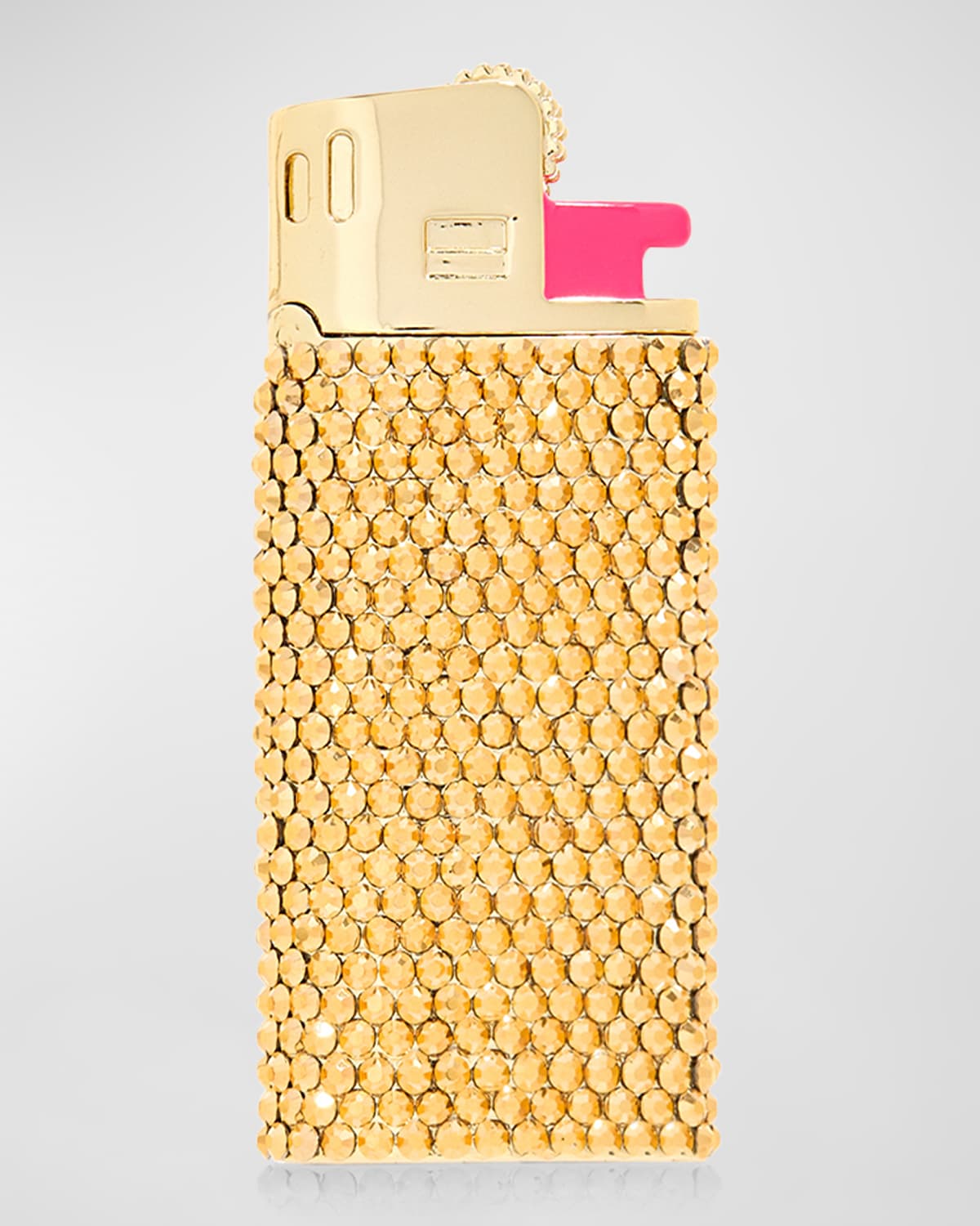 Judith Leiber Couture "Got a Light" flame pillbox in crystals and zinc alloy Structured top with liftclasp closure Approx. 2.7"H x 1"W x 0.5"D Item Weight (Lbs.): 0.5 Imported