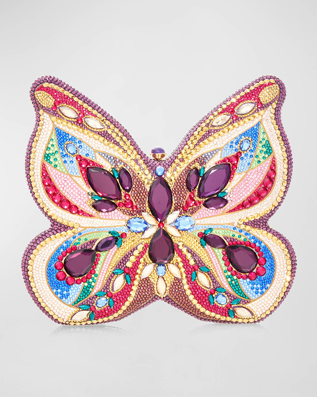 Judith Leiber Couture medley butterflyshaped clutch bag in crystals and brass Detachable chain shoulder strap, 19" drop/ 40"L Can be worn as a shoulder or clutch bag Structured top with pushlock closure Lining: Leather Approx. 7.5"H x 6.8"W x 1.8"D Item Weight (Lbs.): 3.0 Made in Italy