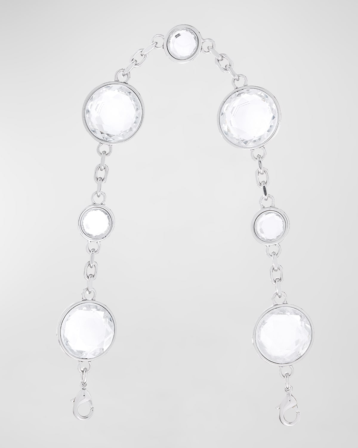 Judith Leiber Couture chain shoulder strap in silverplated brass, zinc, and round crystals Approx. 12"L Lobster clasp ends Avoid contact with water and extreme temperatures Item Weight (Lbs.): 1.0 Imported