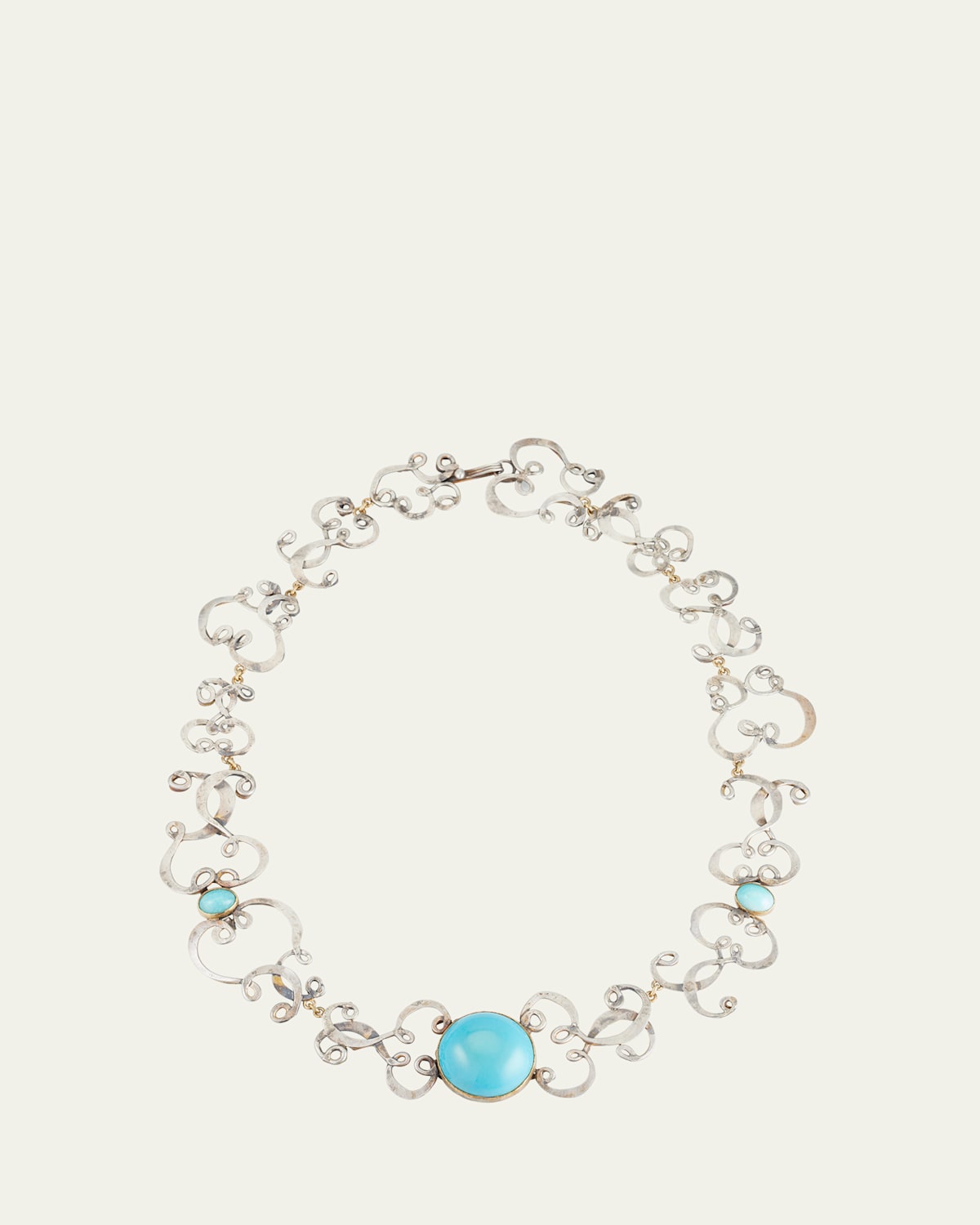 JUDY GEIB necklace Necklace length: approx. 17 inches (Adjustable) 18karat yellow gold and sterling silver Three round Persian turquoise stations Turquoise total carat weight: 30 Made in USA