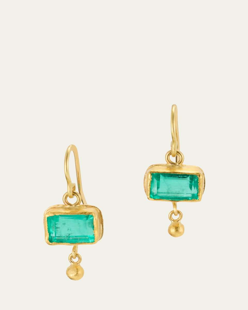 JUDY GEIB drop earrings 18karat and 22karat yellow gold Rectangular Colombian emerald 4.13 total emerald carat weight For pierced ears Made in USA