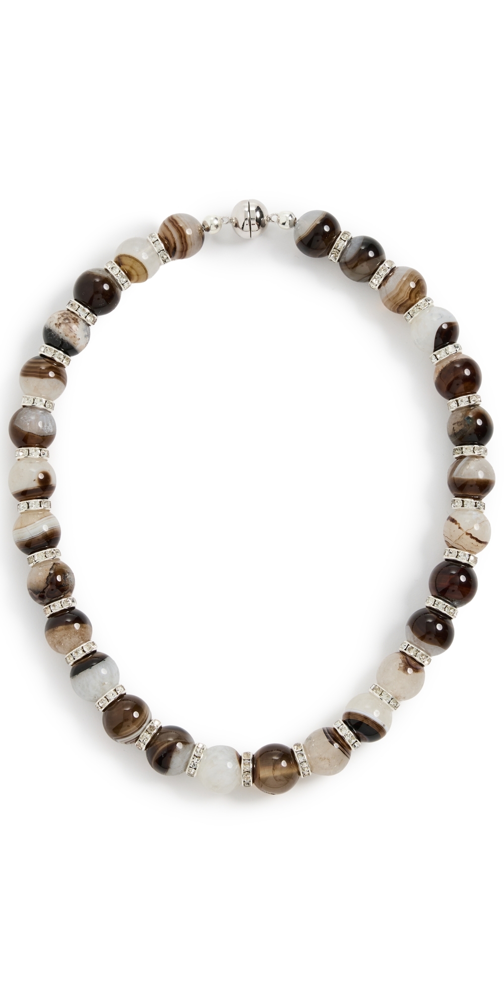 Crystal accents. Glass ball accents. Rhodium plated brass. Magnetic clasp. Made in the USA. Measurements: Length: 17.75in / 45.0cm