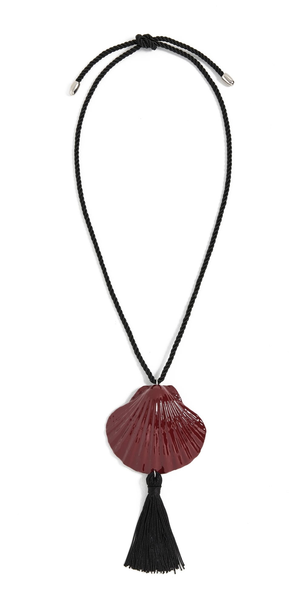 Faux shell accent. Tassel detail. Adjustable braided cord. 24k gold plated brass. Made in the USA. Measurements: Length: 45in / 114.0cm