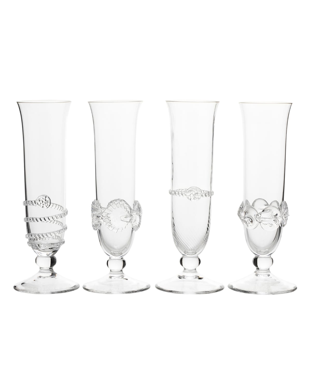 Handcrafted glass flutes. Approx. 2"Dia. x 7.5"T. Size (ounces): 5 Fourpiece set. Dishwasher safe; hand washing recommended Made in Czech Republic