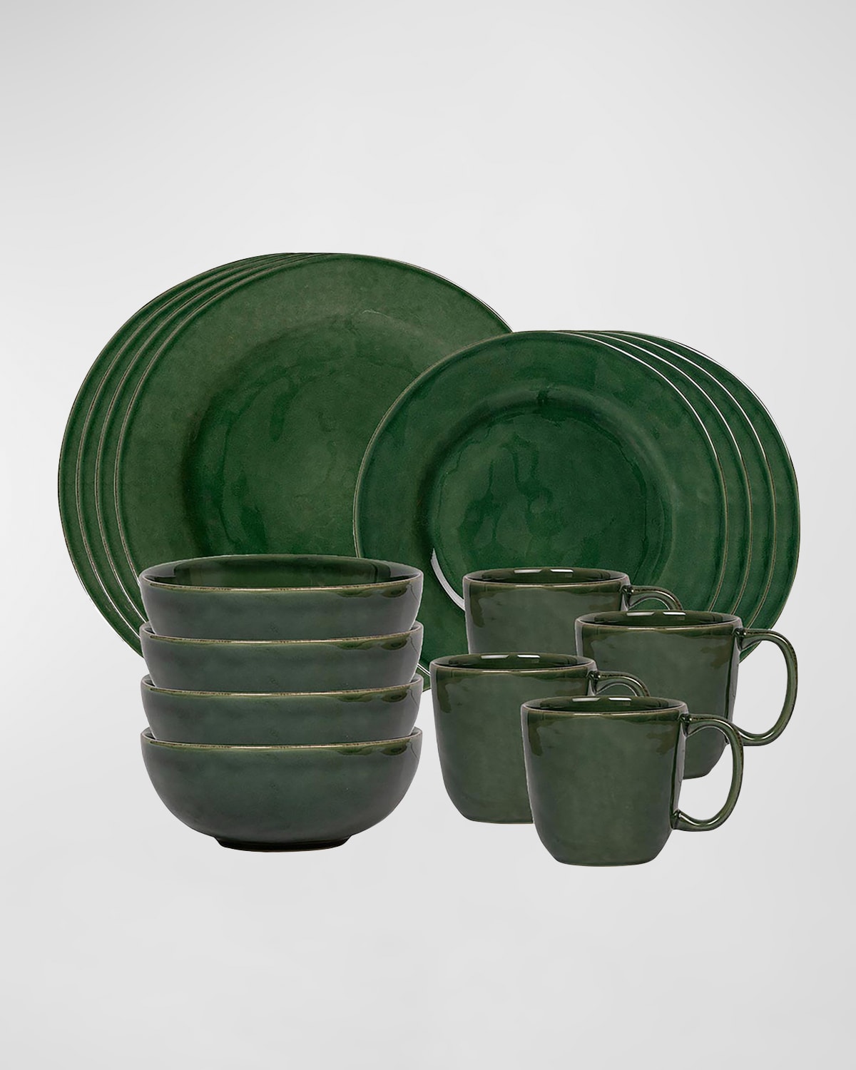 Everything you need to set a stylish place at your table, this collection is perfect for parties and eminently useful for every day. Purely lovely in its understated aesthetic, the artisanal beauty of this set lies in its studied simplicity for daily use, but also as a musthave for mixing a gorgeous pop of color in lush and verdant green into your table setting repertoire. Handcrafted of stoneware ceramic Approx. 24"L x 16"W x 16"T 16piece set provides service for four and includes four of each: dinner plates, dessert/salad plates, cereal/ice cream bowls, and mugs Size (ounces): Bowl23; Mug13 Item Weight (Lbs.): 25.0 Dishwasher, microwave, and oven safe Made in Portugal