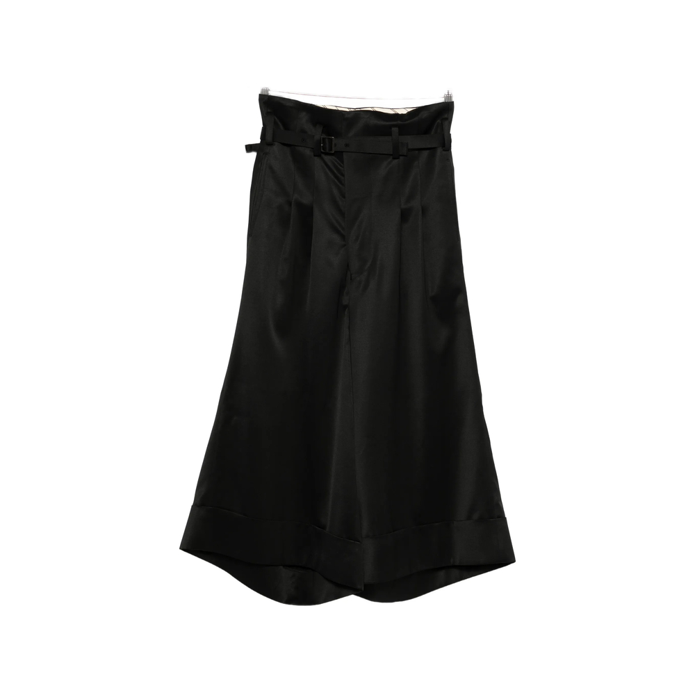 black belt pleats wide leg cuffed hem
