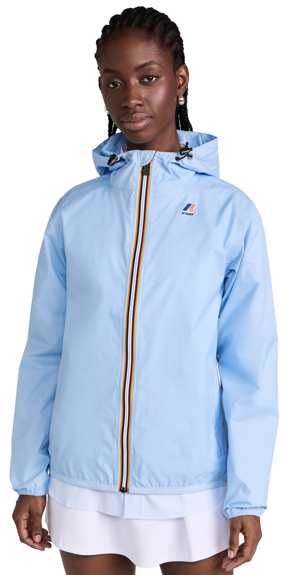 Fabric: Lightweight, non-stretch ripstop. Stripe grosgrain trim. Breathable, water resistant material. Drawstring hood and zip placket. Long sleeves with elastic cuffs. Zip hip pockets. Shell: 100% polyamide. Wash cold. Imported, Vietnam. Measurements: Measurements from size S Length: 25.5in / 65.0cm, from shoulder
