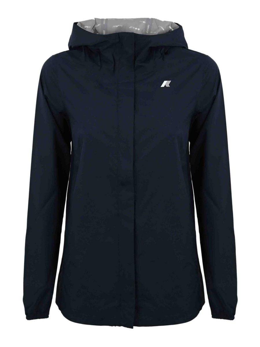 Manches longues, poches zippées cachées, col polo, capuche ajustable, poignets élastiques avec logo, logo côté caur, coupe ajustée