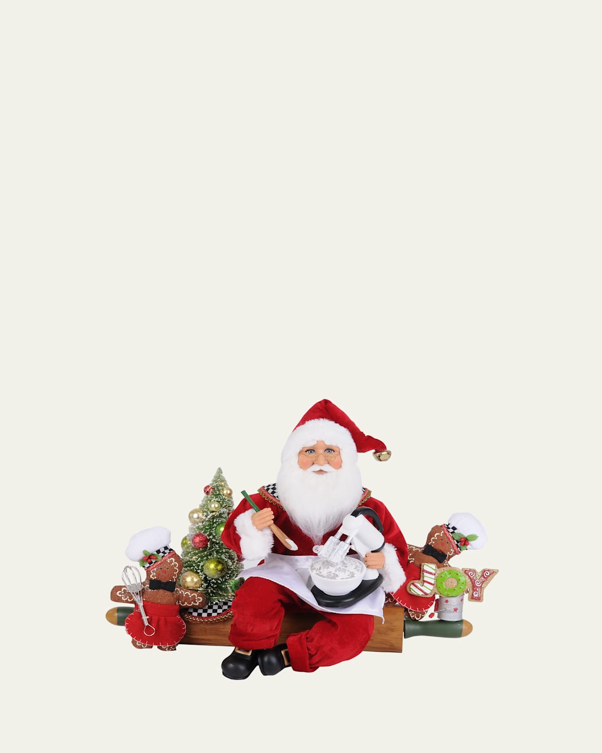 Lighted Santa collectible. Made of polyresin, cotton, nylon, metal, PVC, and wood. Weighted to be free standing. Lights are cord operated. 18"W x 9"D x 13"T. Imported.