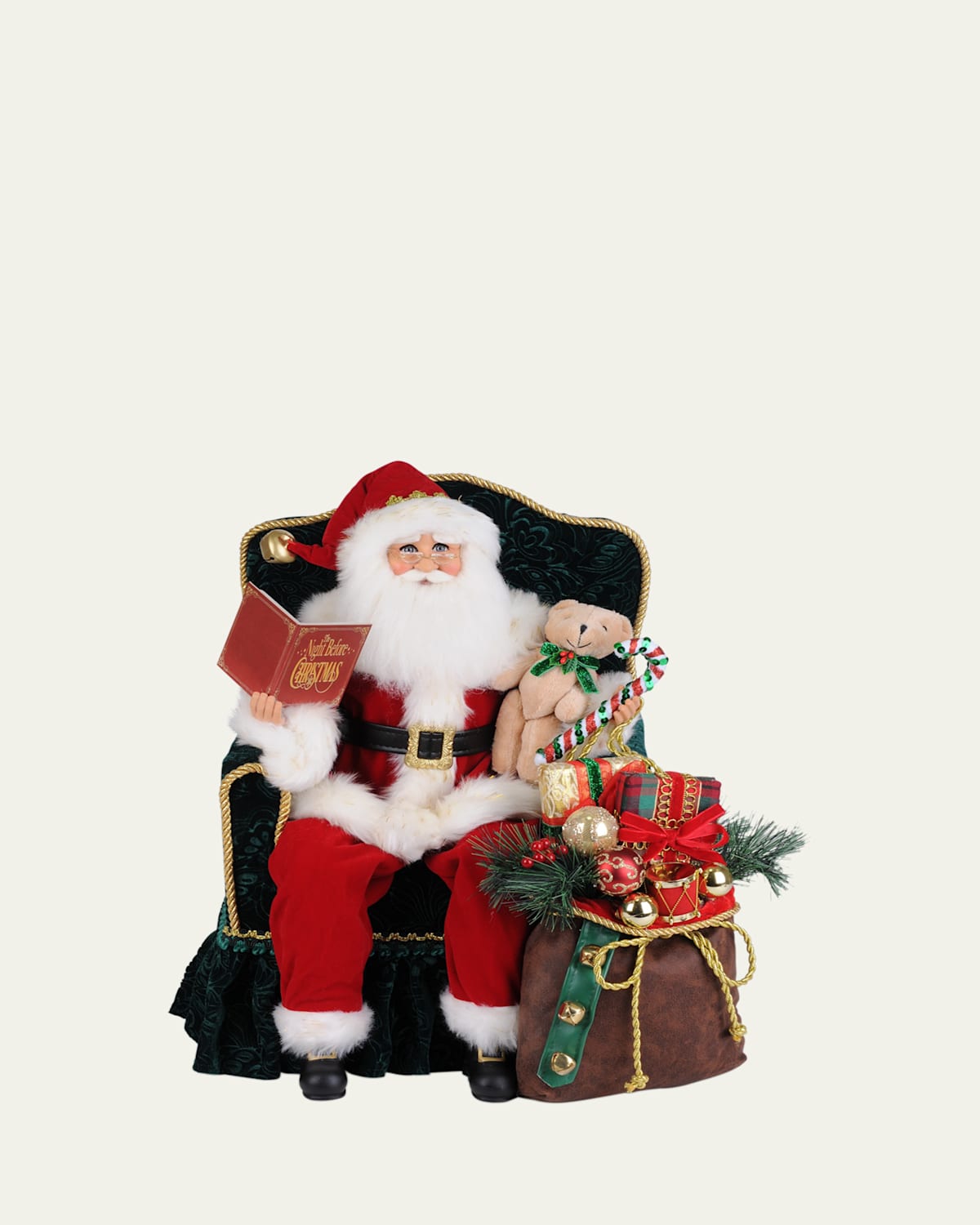 The Small Night Before Christmas Santa in a Chair is a great statement piece to all to your Christmas decor. He is part of the Karen Didion Signature Collection. The quality is unmatched with this decorative piece's handpainted face, inset eyes, unique fabric, and detailed accessories. Santa is made of plastic, polyresin, and cotton Detailed with faux fur (polyester) Approx. 16"W x 19"T Imported