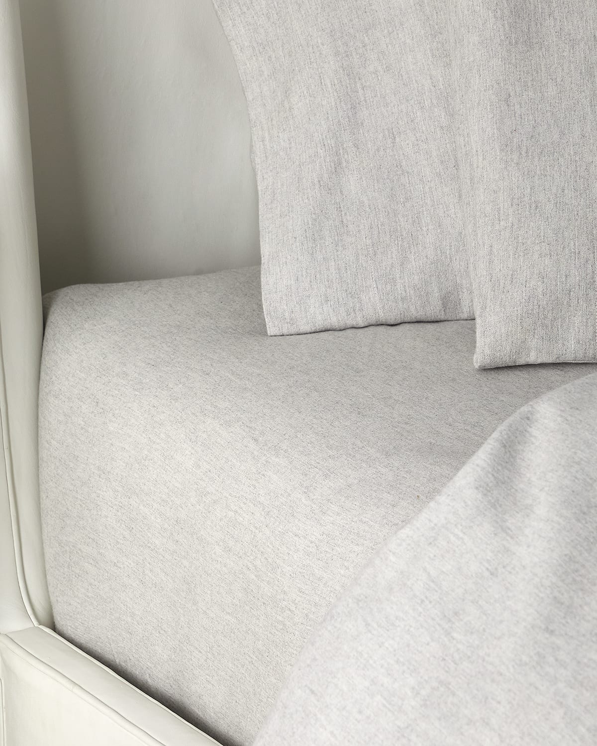 Our flannel sheets are crafted from crisp cotton and blended with smooth rayon made from bamboo for incredible softness. Brushed for lasting comfort and available in a sophisticated heathered grey hue. 100 thread count Approx. 76x80"L Machine wash warm Made in Portugal