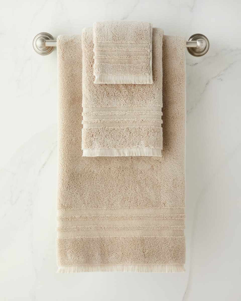 Bath towel made of combed Aegean cotton with eyelash fringe 680 GSM Approx. 30" x 56" Machine wash; do not bleach Imported
