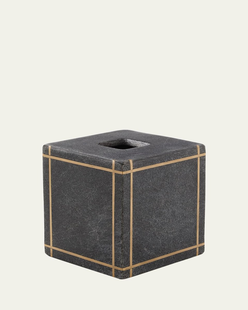 Tissue holder made of marble and metal with brass inlay frame Approx. 5.5"L x 5.3"W x 6"T Hand wash; easily clean with soap and water Imported