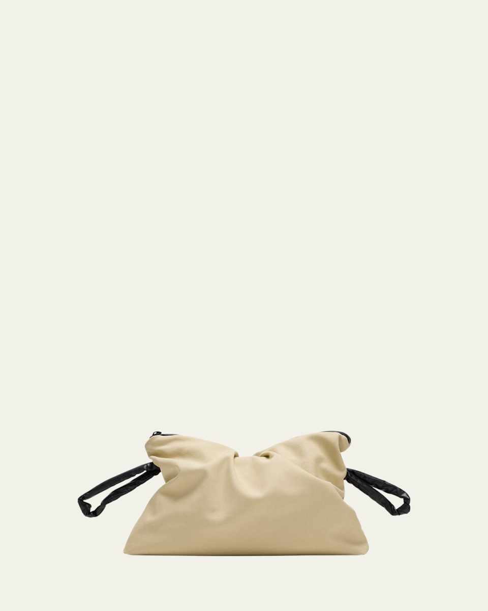 Kassl pouch clutch bag in canvas cotton and faux leather (polyurethane) Side drawstring closure Lining: Polyester Approx. 13.7"H x 24.4"W x 8.1"D Made in Poland