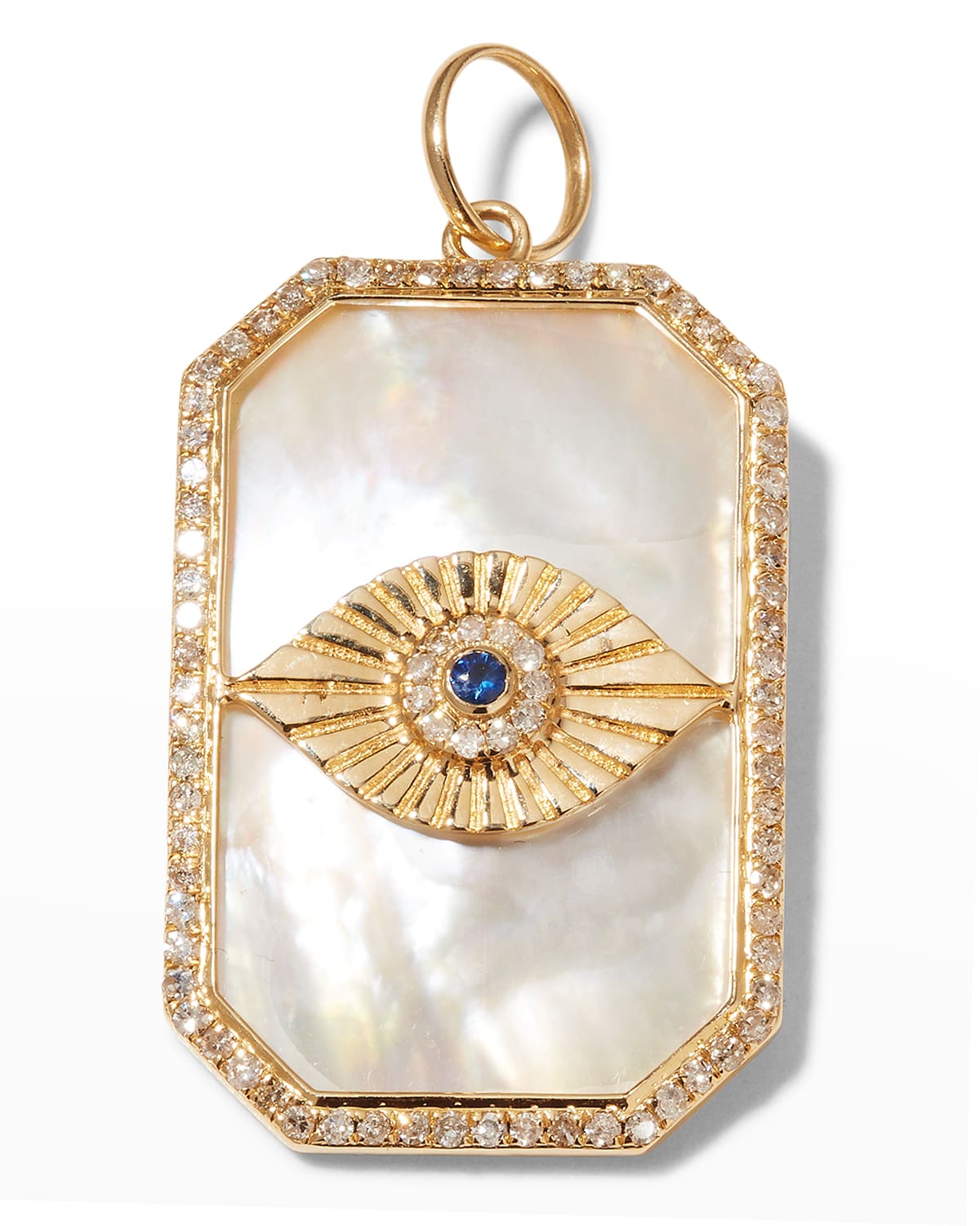14K Gold Diamond & Sapphire Evil Eye Pendant
