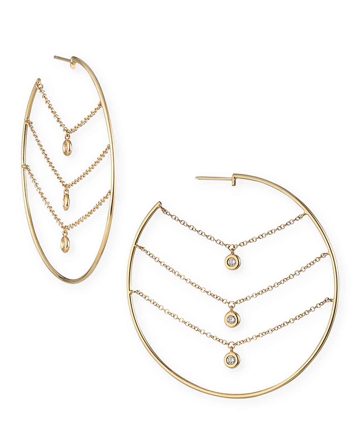 Siren 14k Gold Three-Row Chain Diamond Hoop Earrings