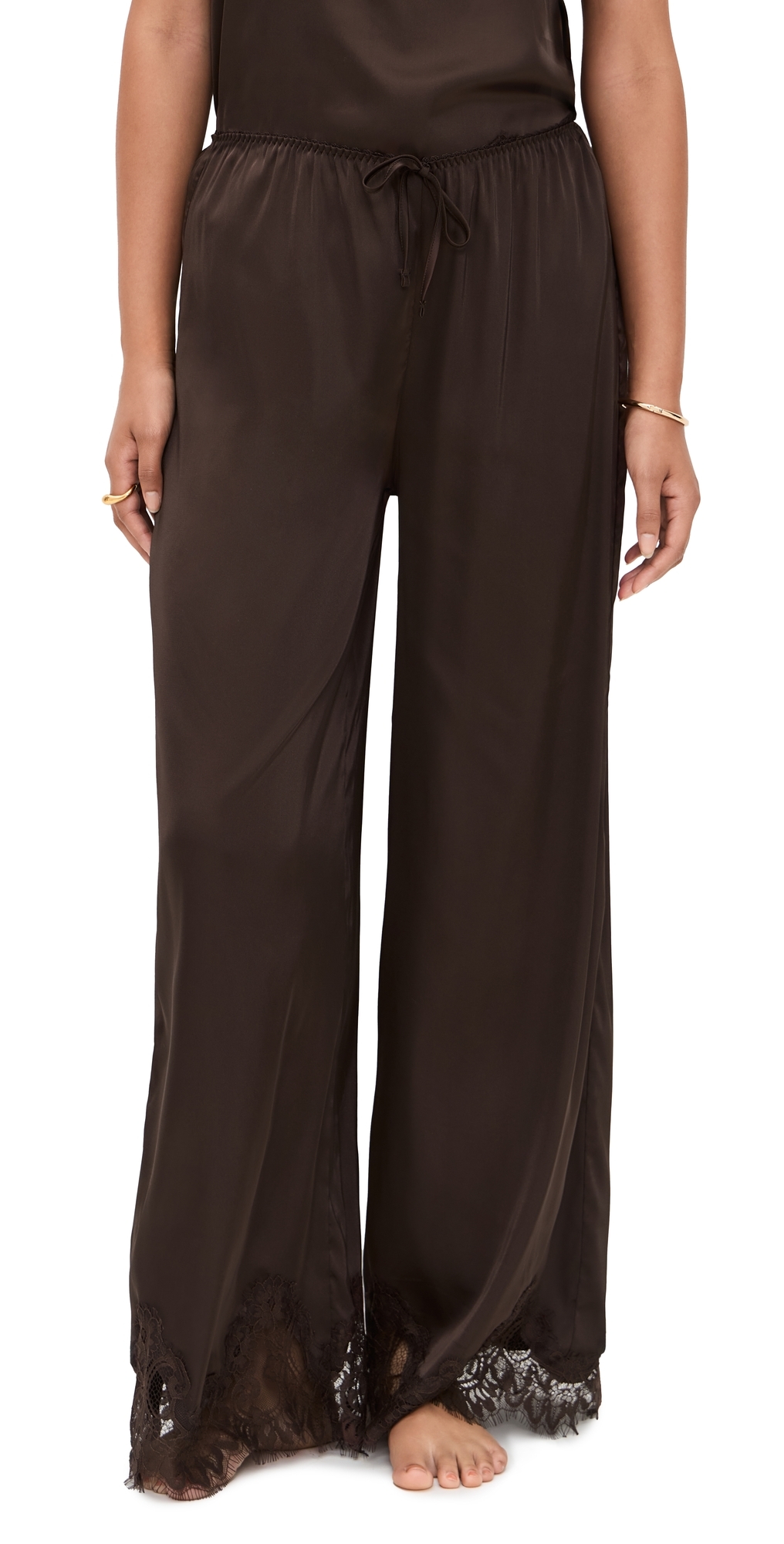 Fabric: Lightweight, super-stretch satin. Scalloped lace trim. Covered elastic waistband. Ties at front. Shell: 93% polyester/7% elastane. Wash cold. Imported, China. Measurements: Measurements from size S Rise: 10.75in / 27cm Inseam: 29.5in / 75cm Leg opening: 24.5in / 62cm