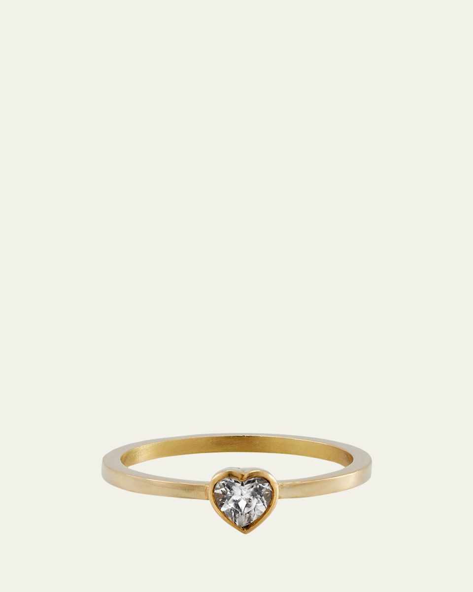 18K Yellow Gold Tinsy Tiny Heart Ring with Faceted White Topaz