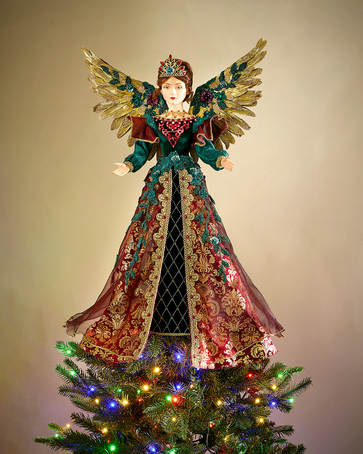 Handpainted with exquisite detail, this tree topper features golden accents and a rich color palette that adds grandeur to any holiday celebration Handcrafted of resin, polyester, and faux fur (wool) Limited quantity produced Approx. 18.5"L x 17.0"W x 21"T Wipe clean Imported
