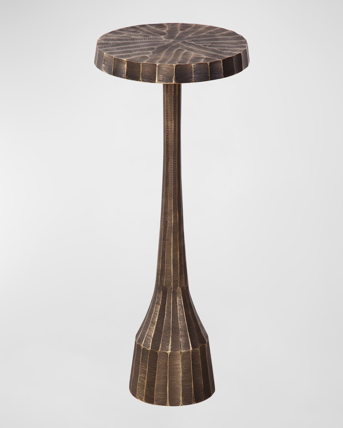 Accent table features a heavily textured cast aluminum form in an Antique Bronze finish. Overall, approx. 13"Dia. x 22"T Finished back Weight, 12.0 lbs Imported Boxed weight, approximately 17.0 lbs