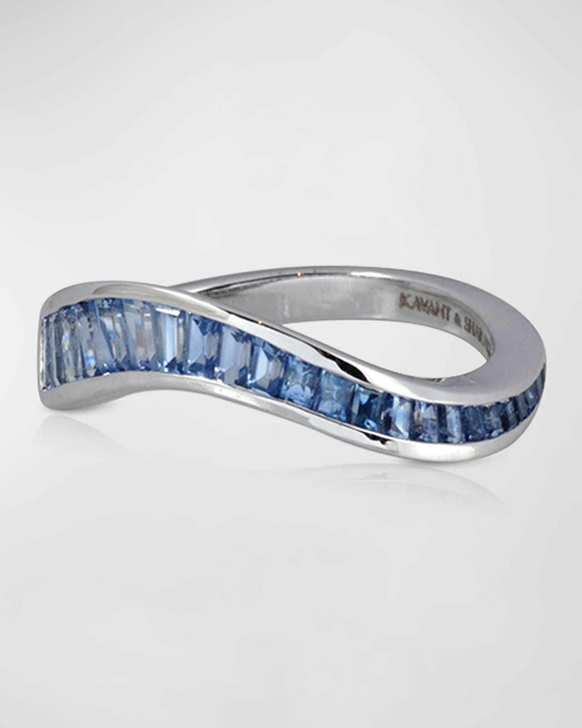 Kavant amp; Sharart stackable wavy ring 18karat white gold curved band Baguettecut blue sapphires Total sapphire carat weight: 2.81 Slipon style Imported