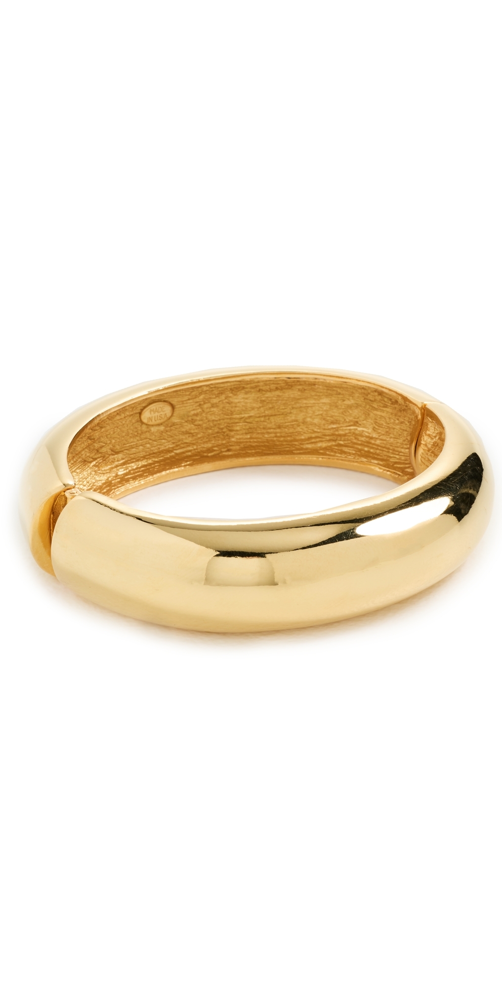 Polished finish. 22k gold plate. Hinged cuff. Made in the USA. Measurements: Length: 3in / 7.5cm