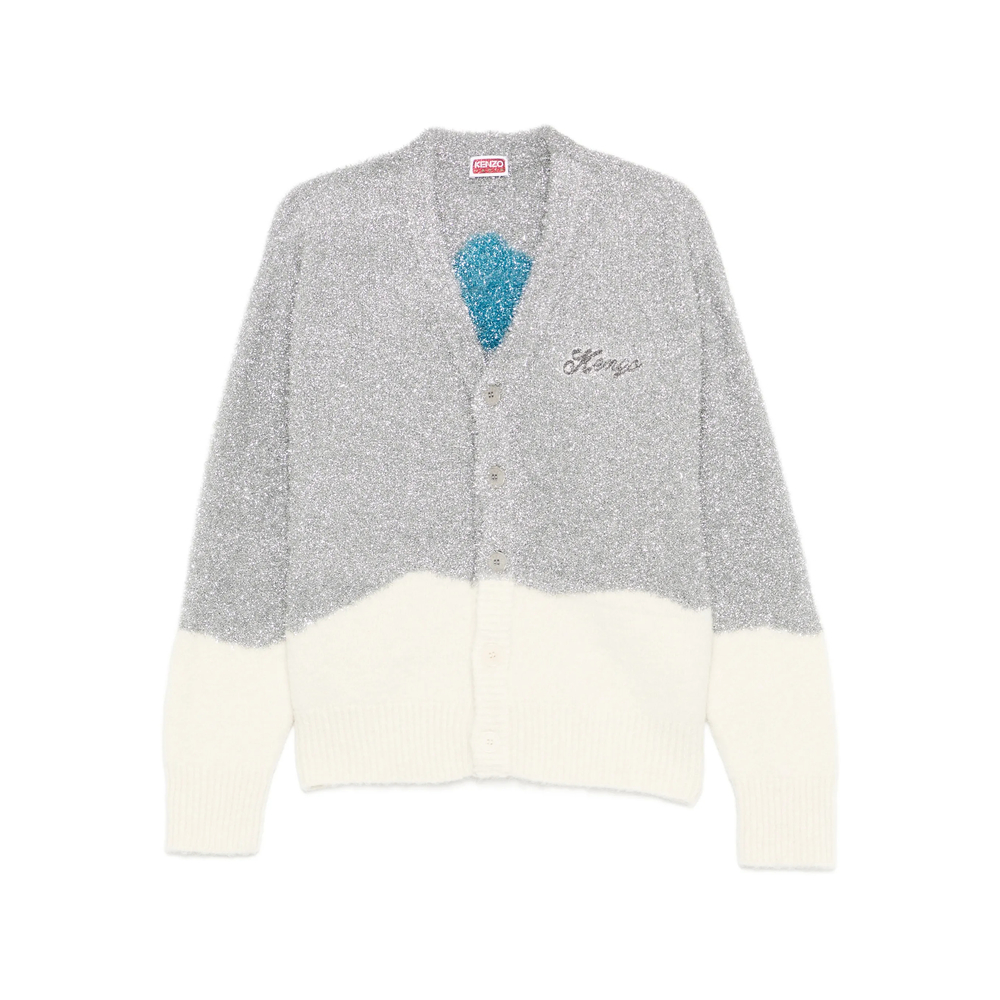 silver-tone two-tone design embroidered logo V-neck front button fastening long sleeves