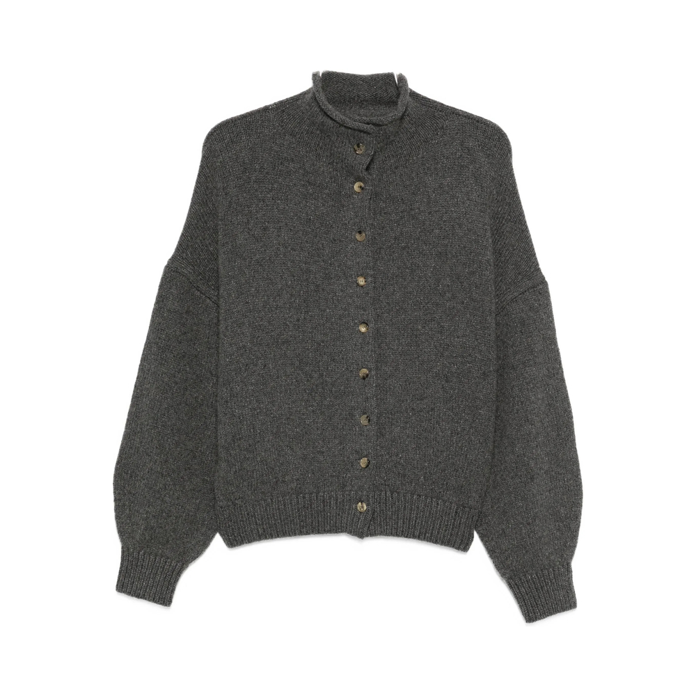 grey button fastening ribbed hem ribbed cuffs high neck long sleeves