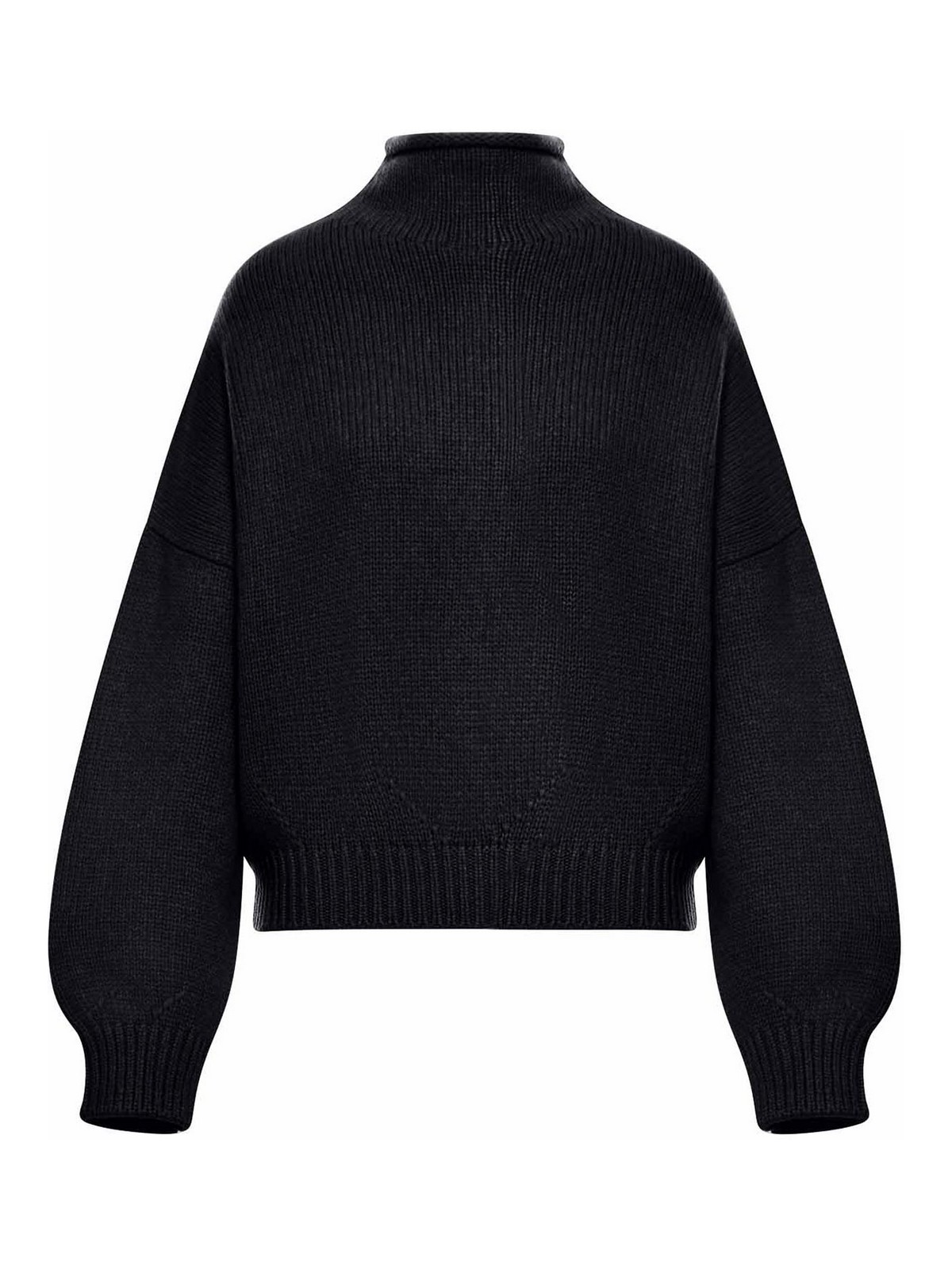 Col haut à manches longues et larges froncées, maille entièrement côtelée, bordures aux poignets et à l'ourlet, emmanchure tombante, ourlet droit, -, couleur noire