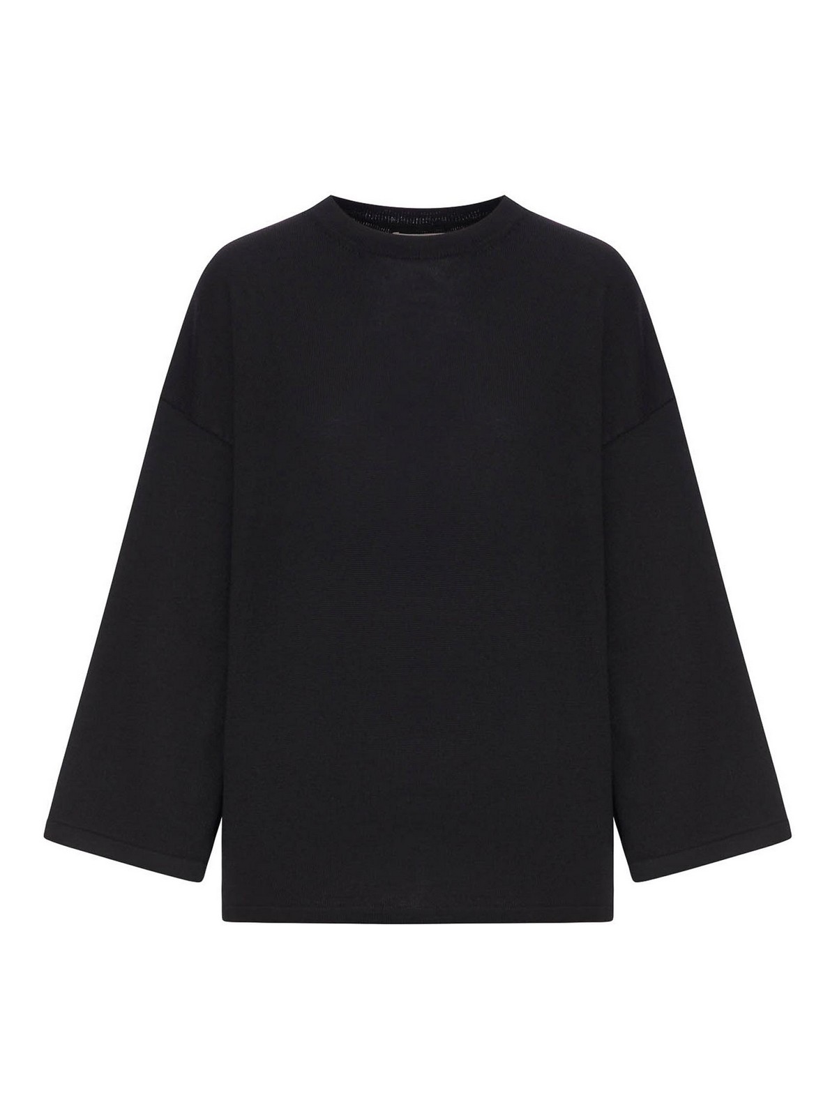 Col rond- épaules tombantes- manches longues- évasé- ourlet droit- couleur noire