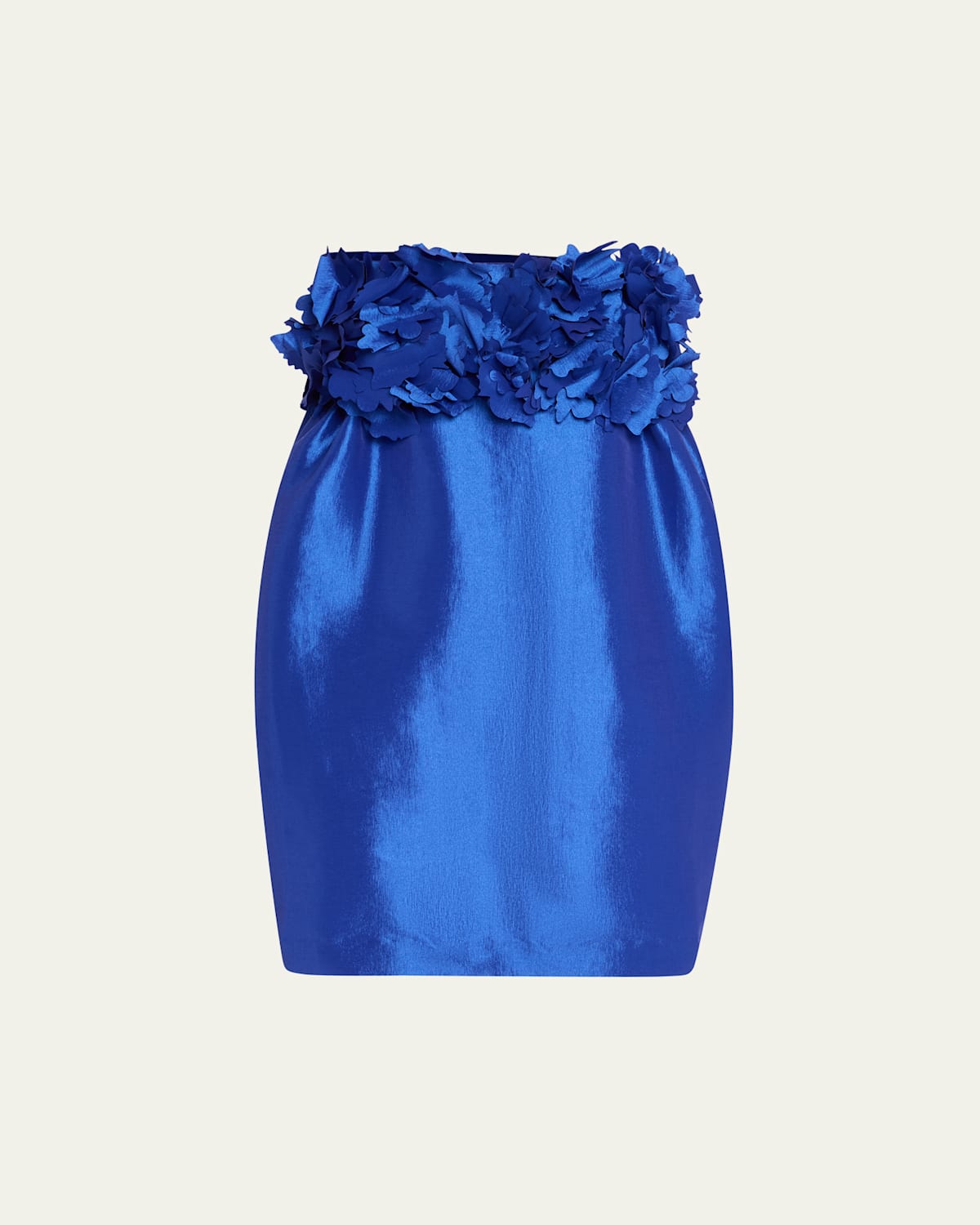 Kika Vargas "AiJen" bubble dress embellished with a floral applique along the neckline Approx. 33.4"L from shoulder to hem Strapless neckline Sleeveless Shift silhouette Midthigh length Invisible back zip Polyester/nylon/polyamide/elastane Dry clean Made in Colombia