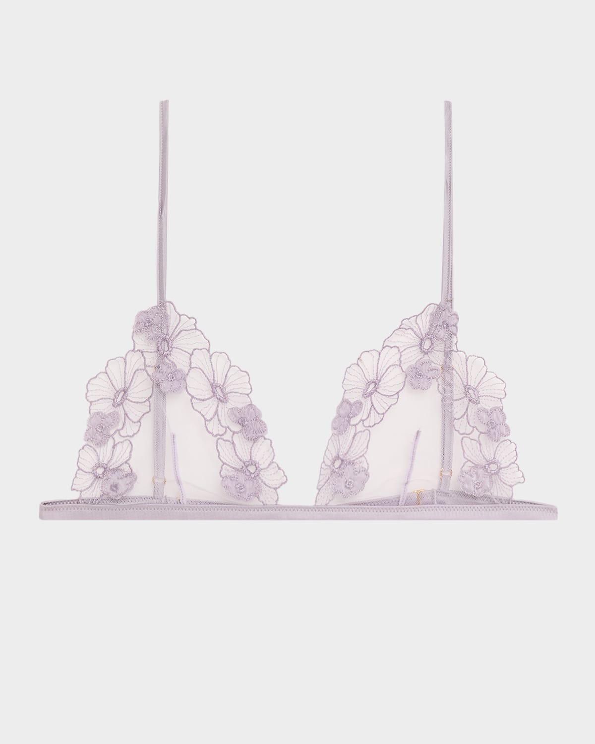 Kiki De Montparnasse "Violet" soft bra in floralembroidered lace Wireless triangle cups Adjustable shoulder straps Vertical bust darts Back clasp closure Nylon/polyamide/polyester Made in USA