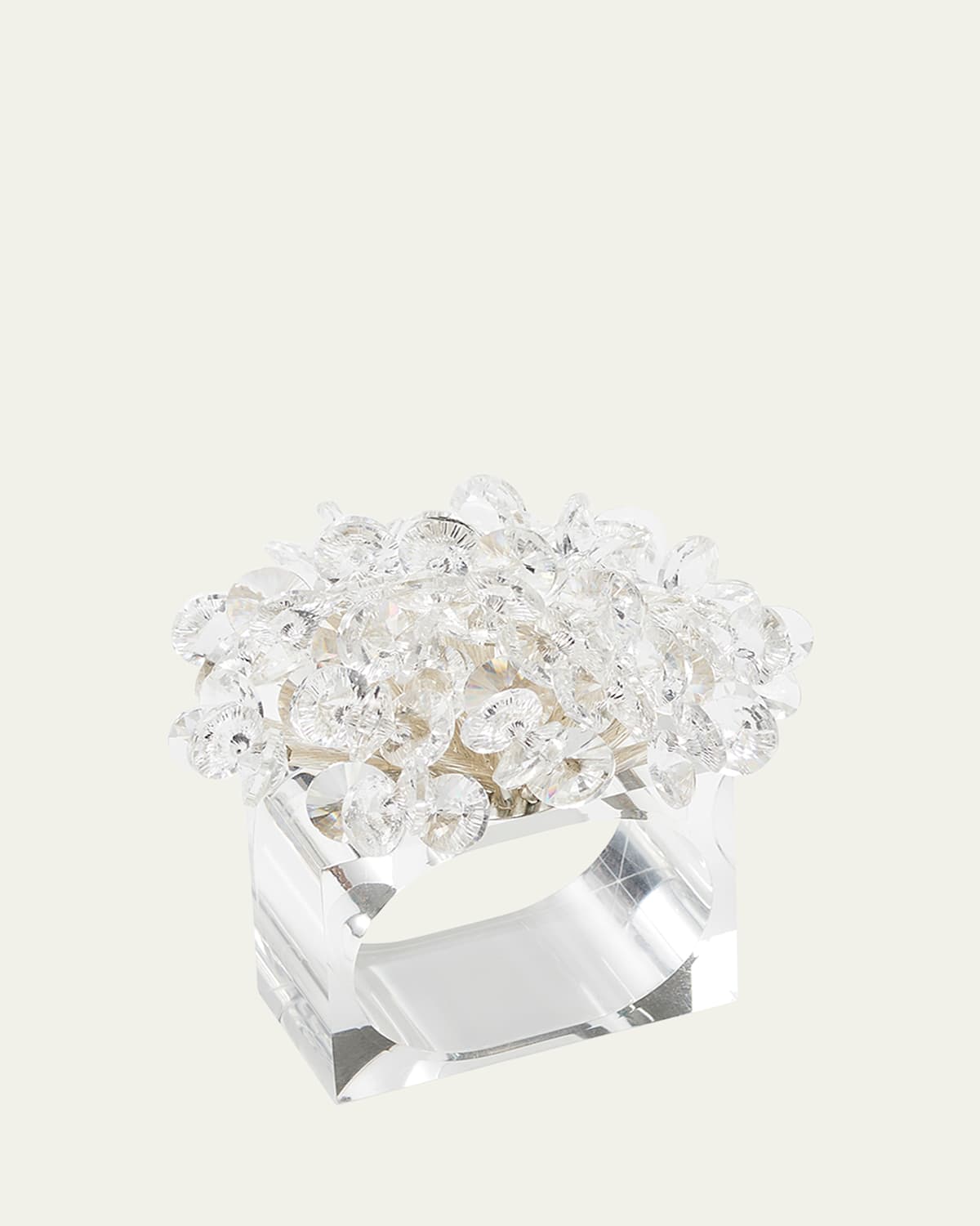The beaded Aster Napkin Ring is a true showstopper. Featuring a burst of smokecolored glass and discshaped beads that sparkle in the light, this stunning napkin ring adds a touch of glamour to table decor. Handarranged atop a square lucite ring, its versatility allows it to enhance a lavish table or add sparkle to a more subtle setting, making it a versatile and elegant accessory for any dining experience. Made of glass, acrylic, and metal Sold individually Approx. 3"L x 3.0"W x 3.0"T Item weight, 0.2 lb Wipe clean Imported