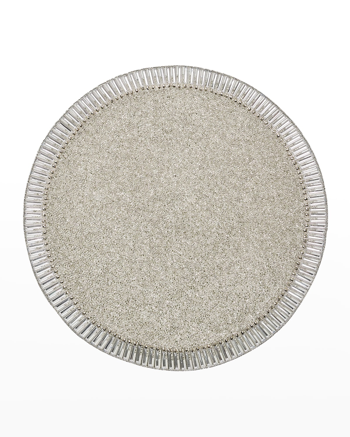 Decorative placemat made of glass and plastic beads with cotton backing Approx. 15"Dia. x 0.3"T Spot clean Imported