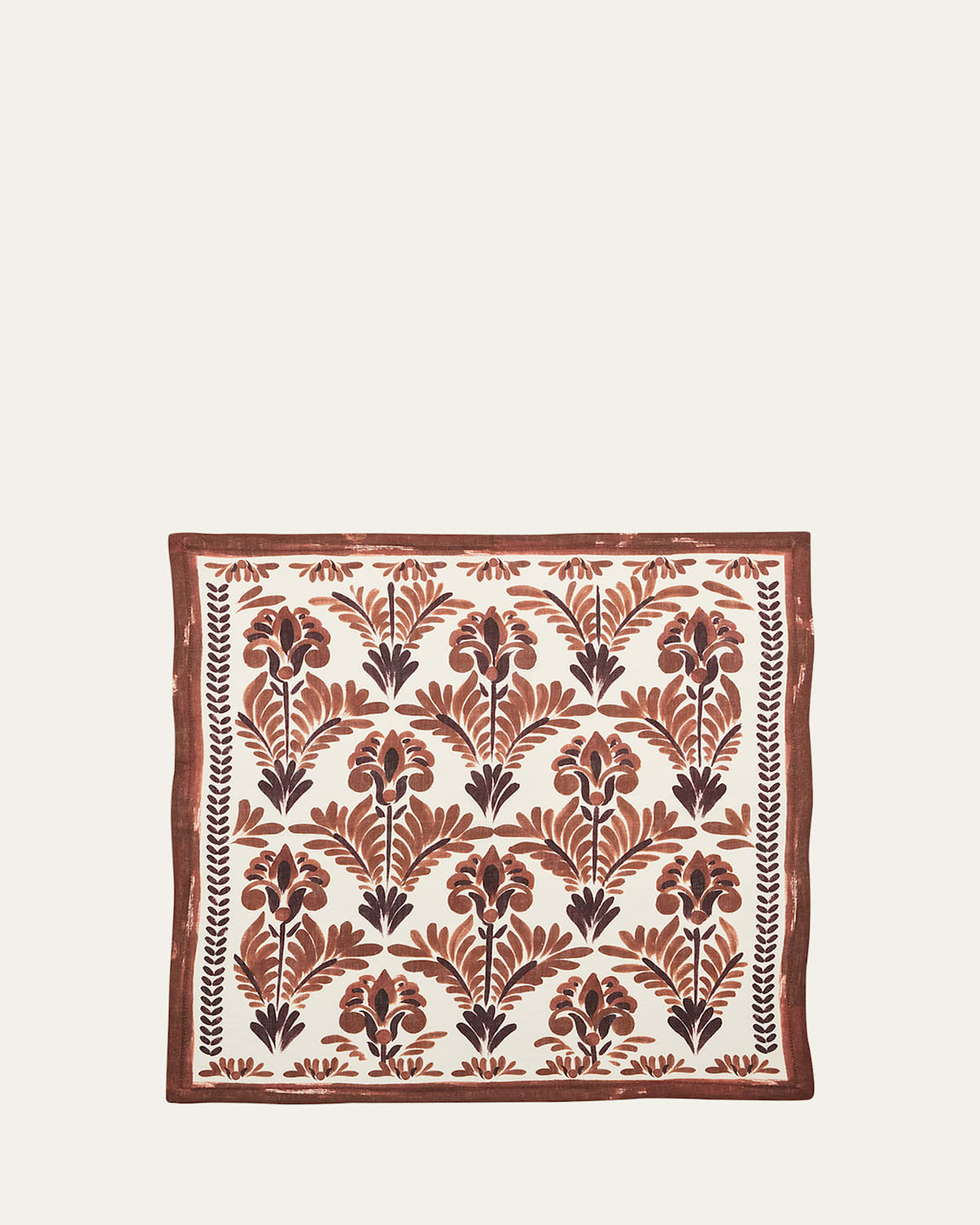 Adorn your fall table with the Botanica Napkin, showcasing a harvestinspired pattern in rich brown and gold colors. Handpainted leaves, flowers, and abstract shapes are digitally printed on linen, creating a playful and vibrant autumn design. This napkin adds the right amount of energy to your fall table setting, infusing it with a delightful touch of seasonal charm. Made of linen Sold individually Approx. 21"sq. Item weight, 0.2 lb Machine wash cold Imported