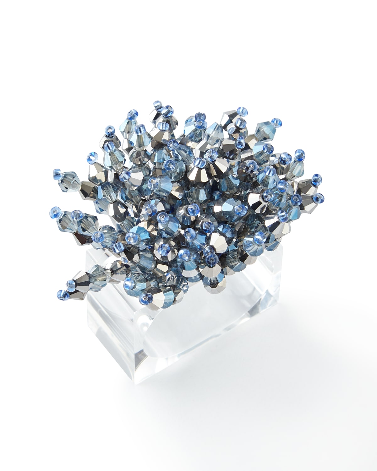 Napkin ring with top beading. Glass, acrylic, and metal. 1.5"W x 1"D x 2"T. Wipe clean with a dry cloth. Imported.