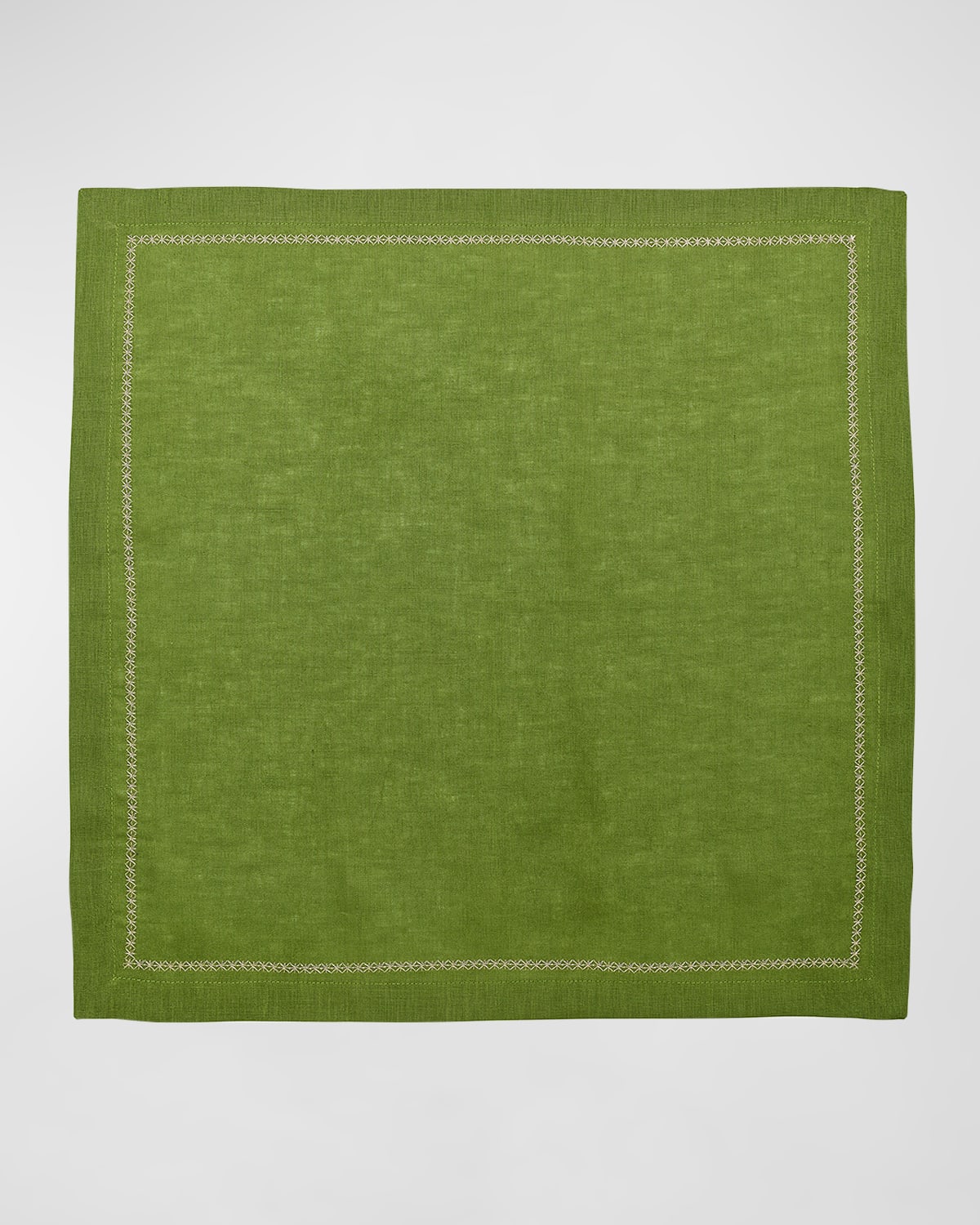 Add color to your table this spring with the embroidered Classic Napkin. Yarndyed linen allows for consistent coloring and is accented with a silver starshaped embroidered border. This napkin is an elegant and easy way to stir a cool new vibrant shade of lime into your table setting repertoire. This is a bestselling and timeless style and is fit for any occasion throughout the year. Crafted of linen Approx. 21"Sq. Sold individually Machine wash cold, tumble dry Imported