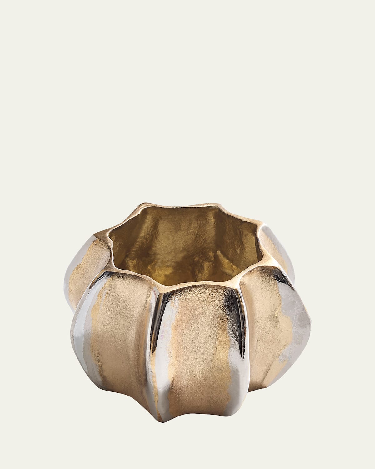 Napkin ring cast in golden and silvertone Features handpolished protruding edges Made of aluminium Approx. 2.75"Dia. x 2" Wipe clean Imported