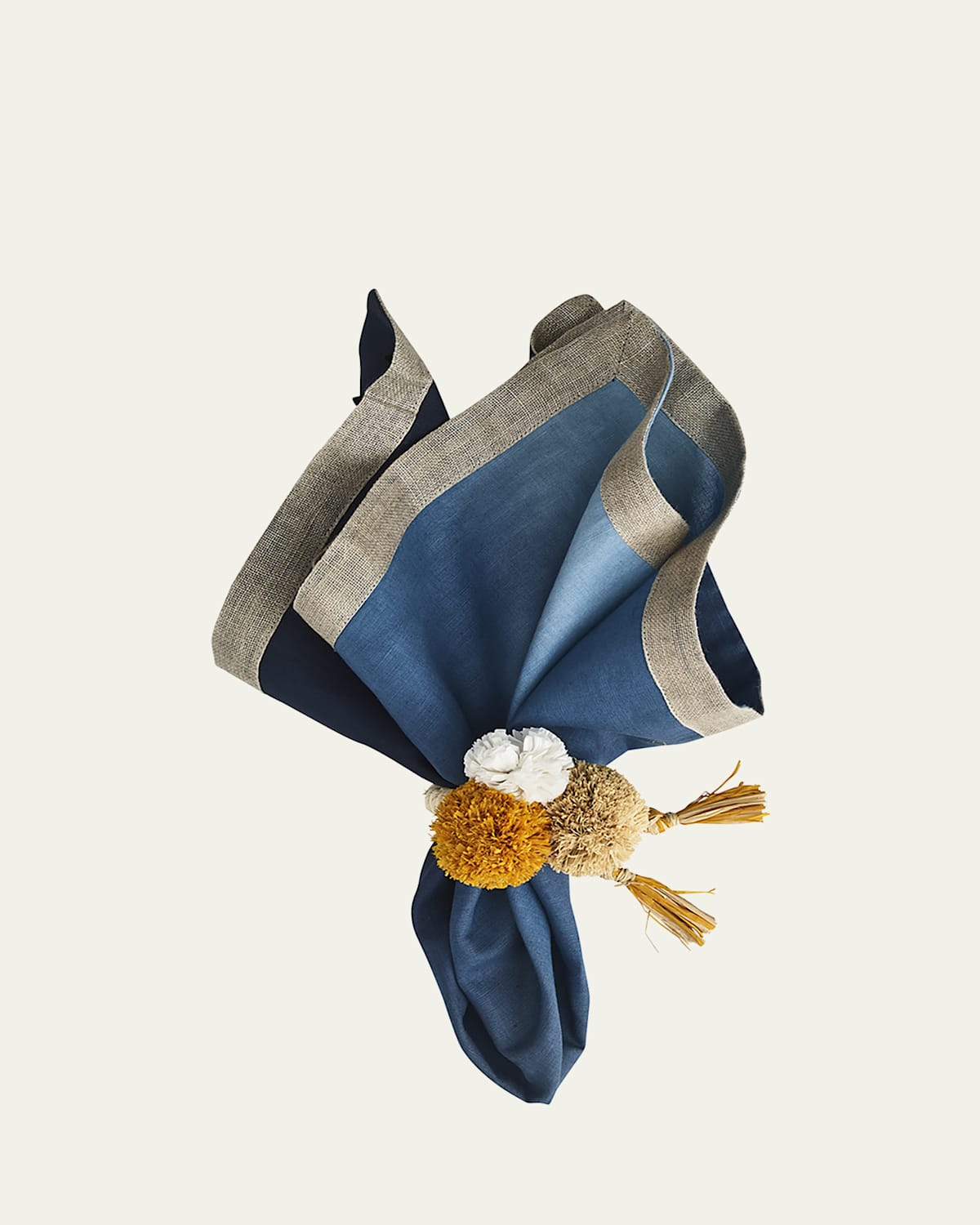 Handcrafted napkin. Decorative dipdye napkin features an ombré gradation. Variations in density and depth of color are to be expected. Hand wash or machine was on delicate cycle separately with mild detergent, machine dry low and remove promptly, steam iron while damp on the reverse side. Do not bleach. Approx. 21"Sq. Linen. Imported.