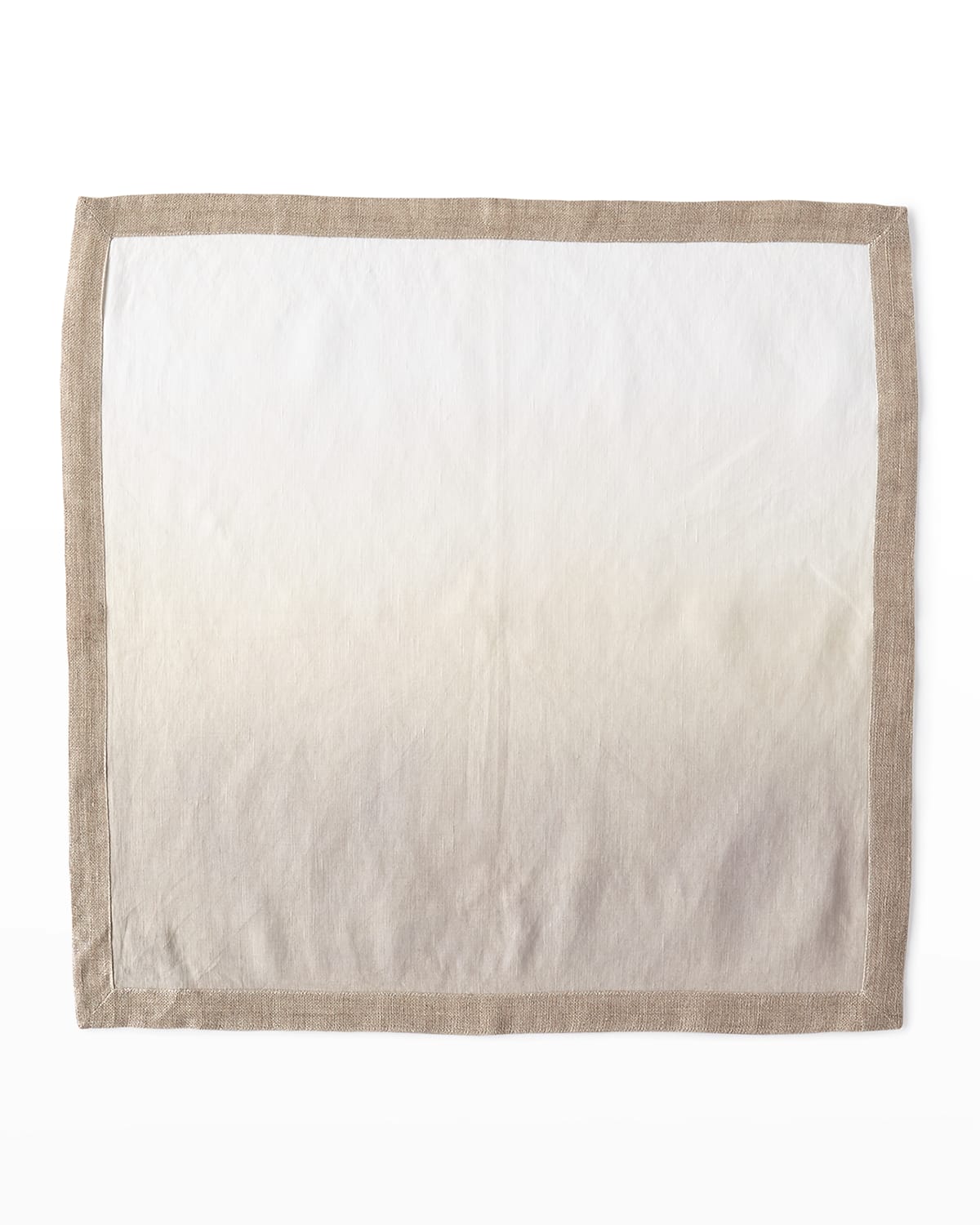 Linen dipdye napkin. Solid border. Decorative dipdye napkin features an ombré gradation. Variations in density and depth of color are to be expected. Hand wash or machine was on delicate cycle separately with mild detergent, machine dry low and remove promptly, steam iron while damp on the reverse side. Do not bleach. 21"Sq. Imported.