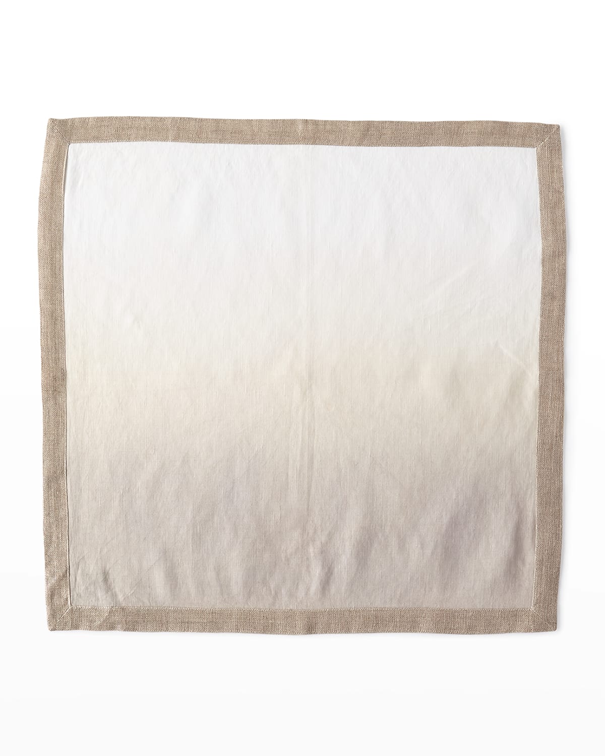 Linen dipdye napkin. Solid border. Decorative dipdye napkin features an ombré gradation. Variations in density and depth of color are to be expected. Hand wash or machine was on delicate cycle separately with mild detergent, machine dry low and remove promptly, steam iron while damp on the reverse side. Do not bleach. 21"Sq. Imported.