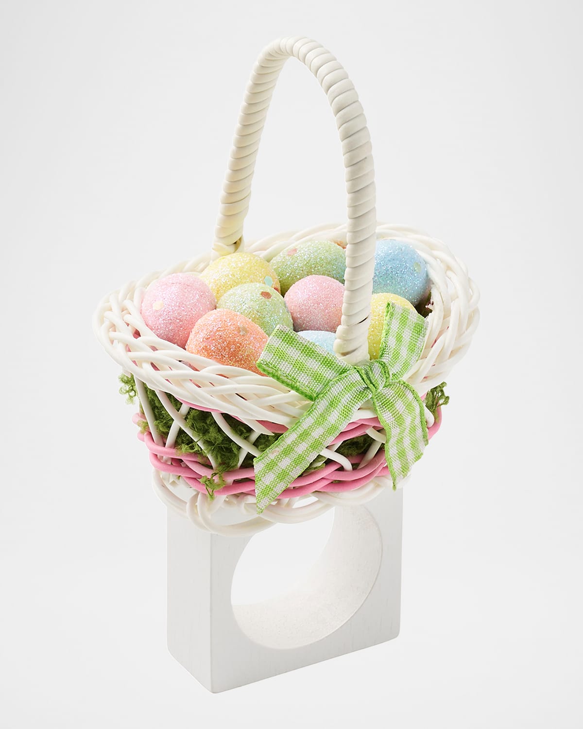The Eggcellent Napkin Ring ties your tablescape with a charming gingham bow, perfect for anyone hunting for cheerful easter table decor. So, place all your eggs in this faux woven rattan basket for a stylish spring season. Crafted of plastic, wood, and polystyrene Approx. 3"L x 2.5"W x 5.4"T Item Weight (Lbs.): 3.0 Wipe clean Imported